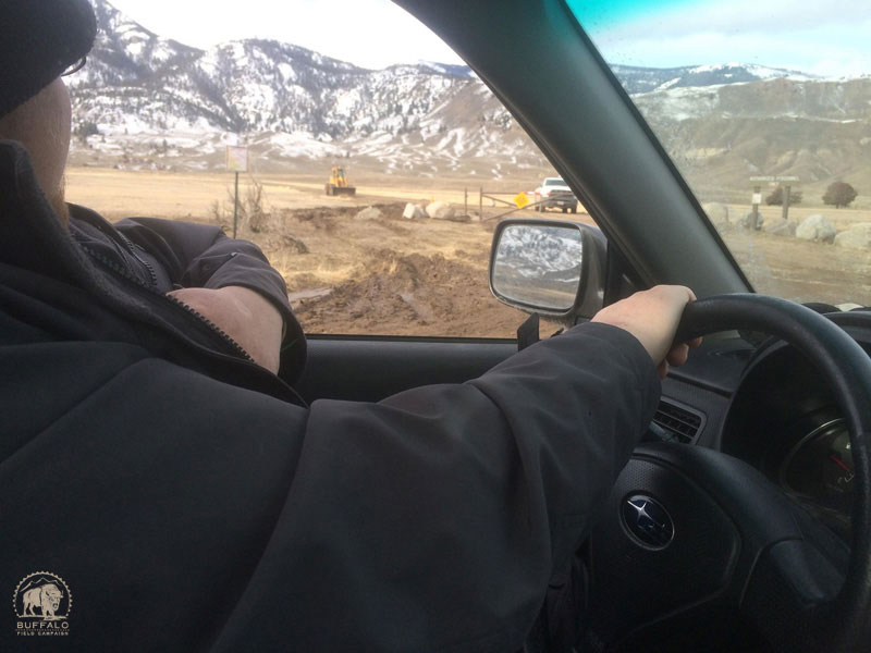 Tosef Gavette, Buffalo Field Campaign’s volunteer coordinator who is patrolling in Gardiner this week said, “Watching buffalo die day in and day out is extremely trying and hard, and it’s a hard decision to continue doing that. Making the decision to sacrifice your freedom is an even harder decision to make. I hope that one day through these decisions being made that all of this hard work will have paid off and the buffalo will roam free.”