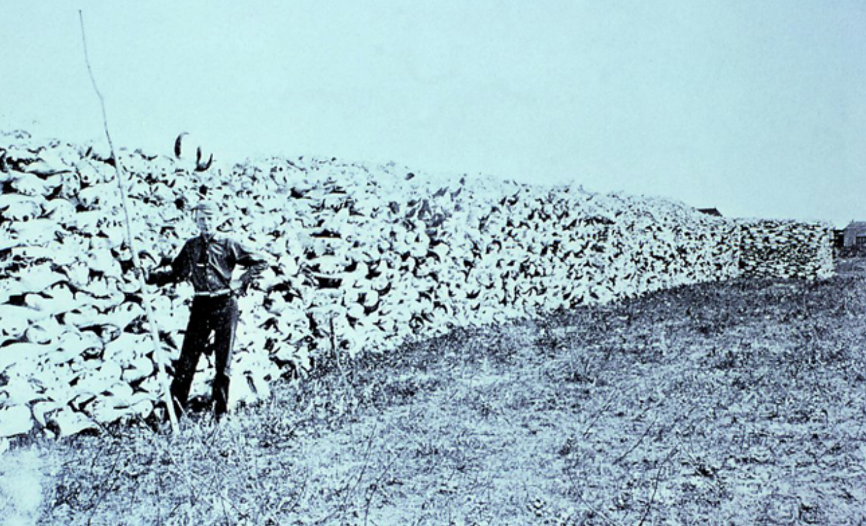 You’ve probably seen pictures like the one below, showing skulls and pelts stacked in unimaginable numbers. The result of that careless behavior is that none of us has ever heard the rumble of millions of hoofs beating through a valley in the summer sunshine...and no one will, as long as we allow business as usual."